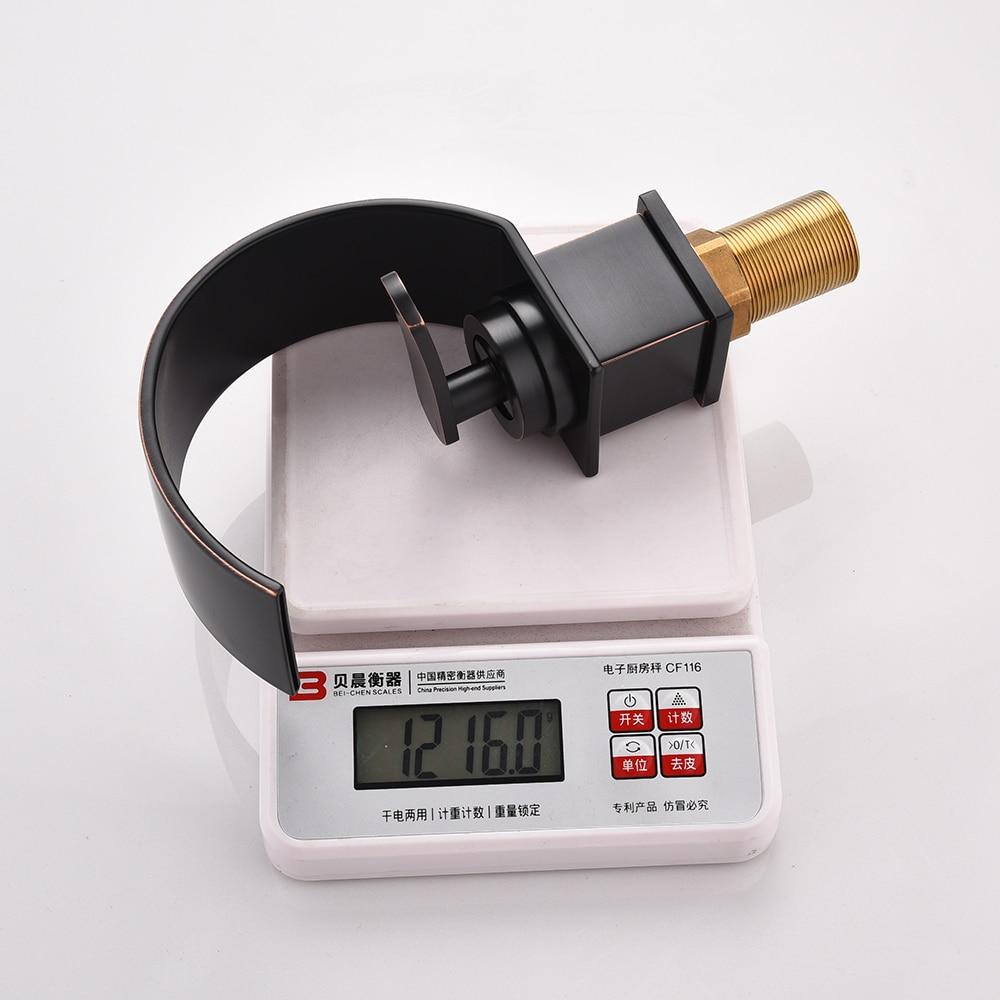 - Bring elegance to your bathroom with the gorgeous Blackwood waterfall single handle faucet!
