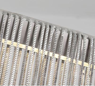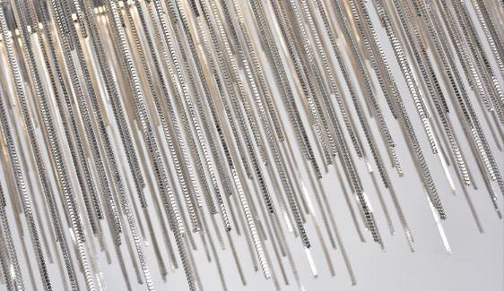 - Light source featured on the top bar of the chandelier, illuminating the chains from above.