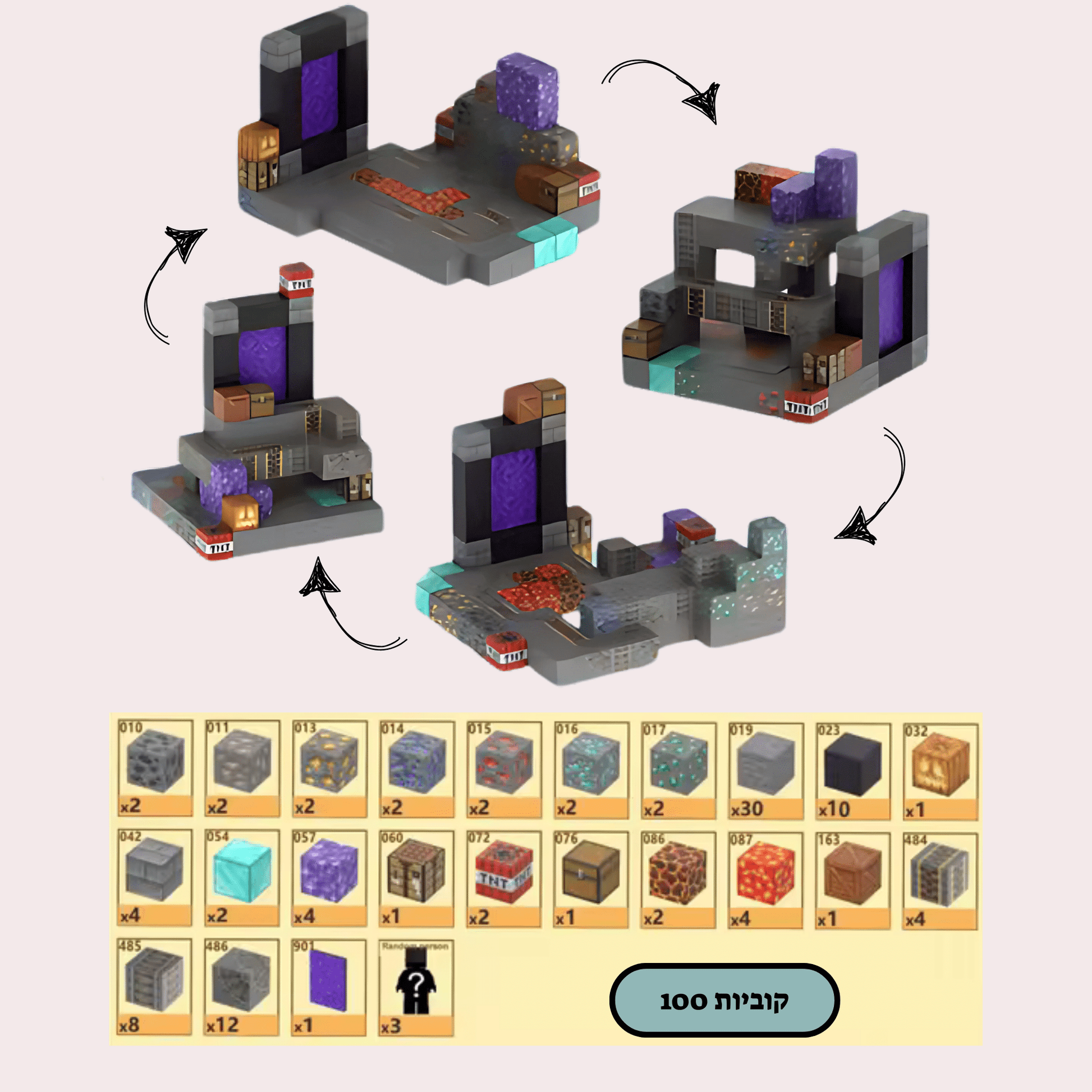 מיינקראפט מגנטים מבצר הקריסטלים - 100 חלקים
